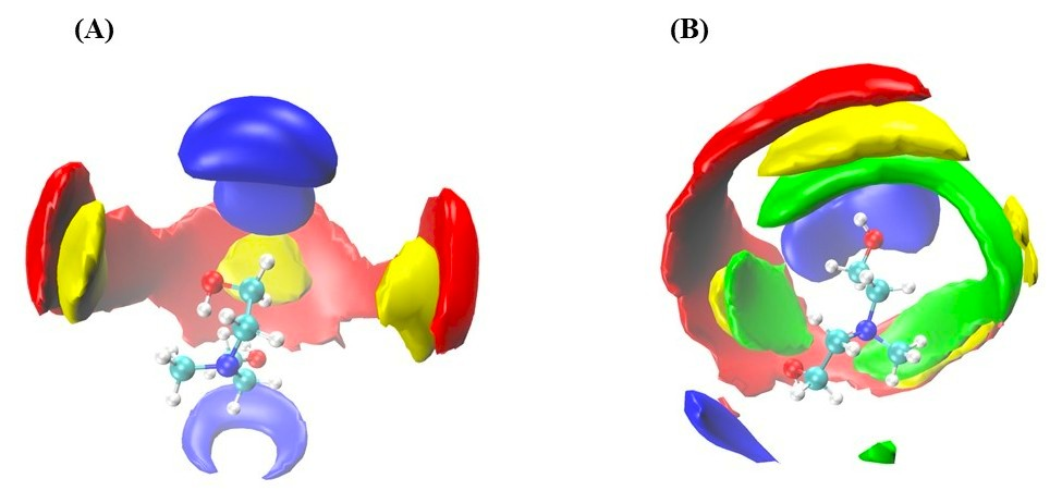 图三 以 MDEA 为中心分子的三元 DES1 体系空间分布函数 (SDF) 可视化