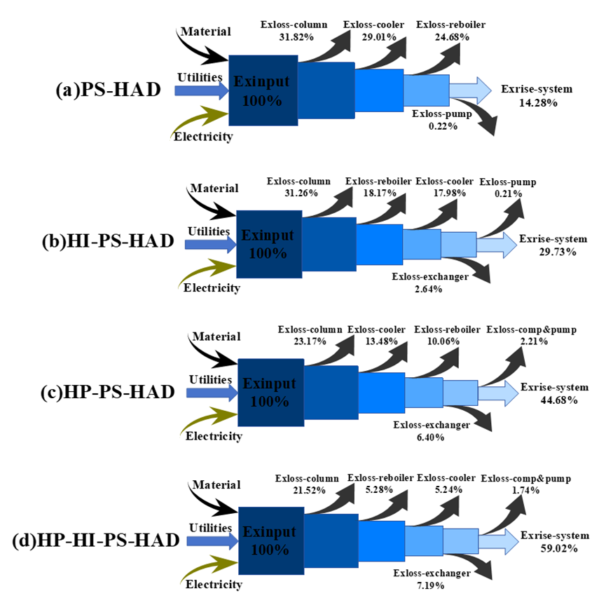 Fig. 3. Analysis of effective exergy losses by different processes